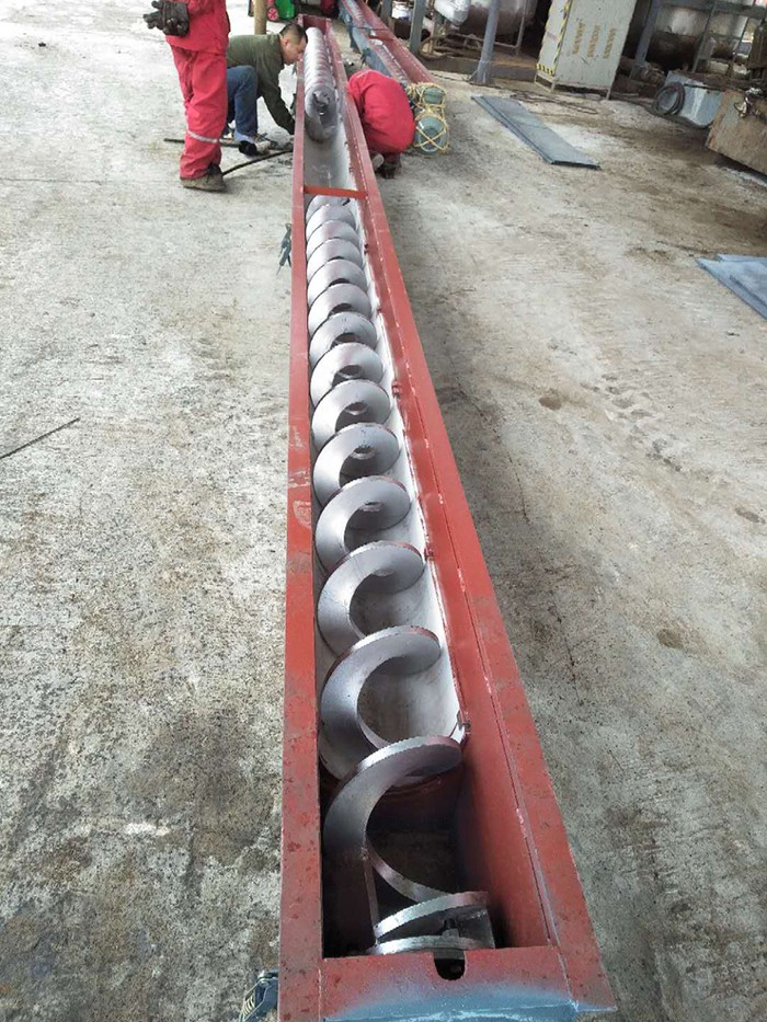 無軸螺旋輸送機(jī)的螺旋葉片有實(shí)體螺旋面、帶式螺旋面和葉片螺旋面三種形式,其中,葉片式螺旋面應(yīng)用相對(duì)較少,主要用于輸送粘度較大和可壓縮性物料,這種螺懸面型,在完成輸送作業(yè)過程中,同時(shí)具有并完成對(duì)物料的攪拌、混合等功能。