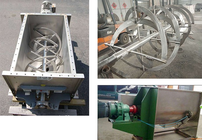 臥式混料機(jī)由U形容器、螺帶攪拌葉片和傳動部件組成;螺帶狀葉片一般做成雙層或三層,外層螺旋將物料從兩側(cè)向中間匯集,內(nèi)層螺旋將物料從中間向兩側(cè)輸送,形成對流混合。 螺帶混合機(jī)對于粘性或有凝聚性的粉粒體的混合以及粉粒體中添加液體及糊狀物料的混合有良好的效果,筒蓋可做成全開式門,以便于對設(shè)備進(jìn)行清洗更換產(chǎn)品。